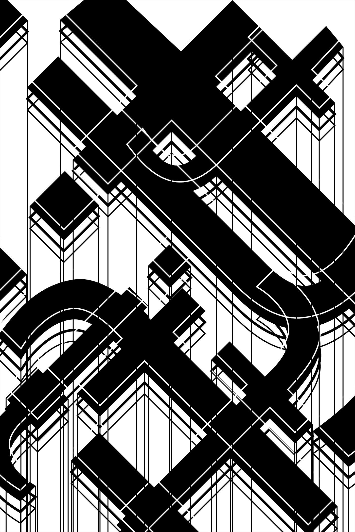 Composition inspired by block type, 1920s skyscrapers, and the Industrial Revolution.