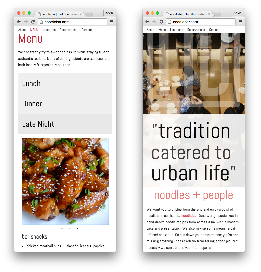 Logo design and responsive website for a conceptual noodle bar.
